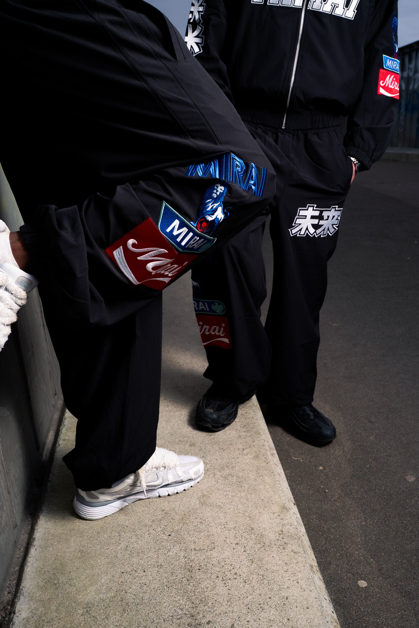 A modern streetwear essential built for everyday movement. These MIRAI track trousers feature a relaxed, straight-leg fit with a clean black base, elevated by bold graphic patches and signature MIRAI detailing. Designed to balance comfort and attitude, they sit effortlessly on the waist with a fluid drape that works styled up or down. Finished with statement branding that adds edge without overpowering the silhouette, these trousers are made to move with you while keeping the look sharp, confident, and unmistakably MIRAI.